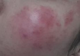 治疗前:陈女士的腿上有许多红斑,一团一团的,奇痒难忍