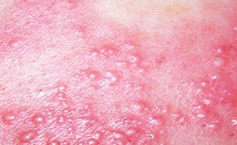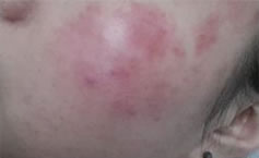 治疗前:刘女士的手上出现很多红色丘疹,手上特别痒同时还有烧灼感